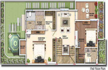 - First Floor Vitrified Flooring in Family and Laminated Wooden Flooring in Bedrooms.