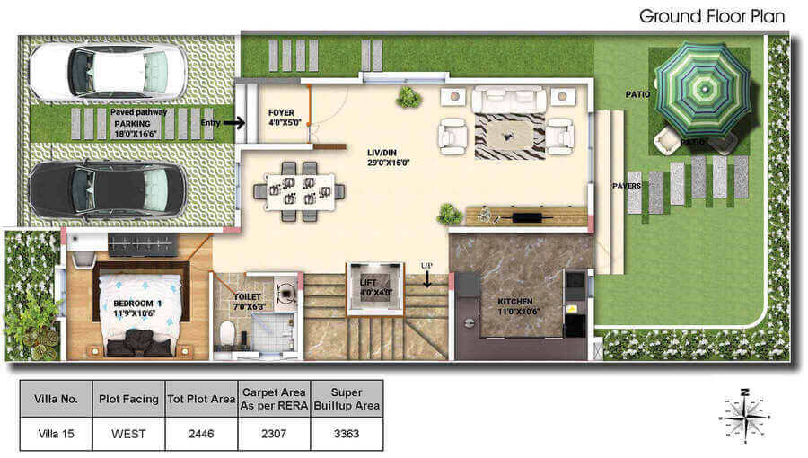 - Aesthetically designed entry space with extensively Landscaped Avenues and Backyard at each Villa.
